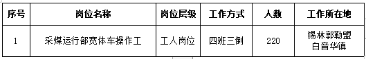 内蒙古白音华蒙东露天煤业有限公司五年固定期限用工招聘公告 一、企业简介 内蒙古白音华蒙东露天煤业有限公司(以下简称“白音华蒙东煤业公司”)于2005于4月注册成立,位于内蒙古锡林郭勒盟西乌珠穆沁旗境内的白音华工业园区,为中电投蒙东能源集团有限公司(国家电投内蒙古能源有限公司)控股子公司,总资产125.72亿元。是集煤炭生产、加工、销售为一体的国有大型现代化露天煤矿,属于我国能源重点发展地区13个大型煤炭基地之一的蒙东基地。主要产品为环保特性突出的老年优质褐煤,平均发热量为3150千卡,地质储量13.66亿吨,煤炭生产能力年产量2000万吨,具有低灰、低硫、低磷、高挥发的“三低一高”环保特性,是发电和民用采暖的首选燃料。 二、招聘原则 1.德才兼备、以德为先原则; 2.公开公正、竞争择优原则; 3.双向选择、人岗相宜原则; 4.注重实绩、群众公认原则。 三、招聘范围 面向社会公开招聘。 四、招聘岗位、人数及工作地点 五、报名条件 (一)基本条件 遵守国家法律法规,具有良好的思想品德,认同国家电投绿色、创新、融合,真信、真干、真成的核心价值观;具有良好的职业素养,遵纪守法,勤勉尽责,团结合作,廉洁从业,作风形象和职业信誉好;具有良好的心理素质,身体健康,满足工作要求。 (二)岗位条件 1983年1月1日后出生,高中及以上学历,B2及以上驾驶证,持有在有效期内的《煤矿企业其他从业人员安全培训合格证明》(岗位:自卸车司机)或《安全生产知识和管理能力考核合格证》。 六、招聘程序 (一)现场报名 1.报名时间:2023年11月27-30日 15:00止。 2.报名地点: (1)矿内:内蒙古锡林郭勒盟西乌珠穆沁旗白音华工业园区内蒙古白音华蒙东露天煤业有限公司职工培训中心。 (2)矿外:内蒙古锡林郭勒盟西乌珠穆沁旗白音华镇党群活动中心(体育馆)。 3.报名方式:采取现场报名方式,符合招聘条件并有意应聘者应携带材料前往报名地点报名。 4.报名材料:公开招聘报名表两份、身份证、毕业证、学位证(如有)、B2及以上驾驶证(需现场提供真伪查验证明),在有效期内的《煤矿企业其他从业人员安全培训合格证明》(岗位:自卸车司机)或《安全生产知识和管理能力考核合格证》等材料原件及复印件,公安机关开具的无犯罪证明书面材料,专科及以上学历提供学信网学历查询结果。同时提交像素小于20KB的电子版免冠蓝底照片,文件名为“18位身份证号.jpg”。 (二)资格审查 人力资源部根据招聘岗位要求和报名条件对报名者进行资格审查,经审核合格者方可进入下一环节,由人力资源部核发准考证。 (三)考核选拔 1.采取笔试、实操考核和面试等相结合的方式开展考核选拔,考核选拔成绩=笔试×30%+实操×40%+面试×30%,其中: 笔试满分100分,权重占比30%,采取闭卷形式,重点考核安全知识与专业知识。 实操满分100分,权重占比40%,实操考核低于60分的,取消招聘资格。 面试满分100分,权重占比30%,实操考核合格者进入面试,面试采取现场答辩形式。由应聘者自我陈述、结构式问答、随机问答和综合评价四项内容构成。面试成绩低于60分的,取消招聘资格。 (1)自我陈述主要介绍个人基本情况和应聘优势,时间控制在3分钟以内。 (2)结构式问答由主持人提问,考核应聘者理论水平。 (3)随机问答由评委随机提问,考核应聘者应变能力。 (4)综合评价由评委对应聘者面试过程中的表现情况进行评价。 2.选拔结果应用。按照考核选拔成绩确定录用人员,自入职之日起3个月内,因弄虚作假等原因被举报查实或其他不符合录用情况造成的岗位缺额,后续排名依次递补。 (四)公示 对决定任用的人员,进行为期5个工作日的公示。 (五)体检与职业健康检查 1.拟录用人员需前往霍林郭勒市人民医院进行健康体检(内蒙古自治区通辽市霍林郭勒市梅林敖包大街南侧10号),并提交体检结果,健康体检(参照《公务员录用体检通用标准(试行)》(国人部发〔2005〕1号))合格以霍林郭勒市人民医院意见为准。 2.拟录用人员需前往霍林郭勒市中蒙医医院进行职业健康检查(内蒙古自治区通辽市霍林郭勒市中心路与达莱胡硕交叉口东北80米),并提交检查结果,职业健康检查(参照《职业健康监护技术规范(2014)》)合格以霍林郭勒市中蒙医医院意见为准。 3.两项费用自理,健康体检或职业健康检查结果不合格的,取消录用资格。 (六)录用 对于公示未发现影响任用问题的、入职健康体检和岗前职业健康检查合格的拟录用人员,提交由公安机关开具的无犯罪证明书面材料,经审核通过,公司与员工订立五年固定期限劳动合同,试用期为三个月。五年期满解除合同,支付经济补偿金。 七、薪酬福利待遇 (一)薪酬待遇 执行谈判工资,试用期间按照对应薪酬标准的80%执行。 (二)社会保险 依法为其缴纳养老保险、工伤保险、失业保险、基本医疗(生育)保险以及住房公积金、企业年金、补充医疗保险,其中:住房公积金自入职之日起一个月后起缴,企业年金自试用期结束后起缴。 (三)福利待遇 根据白音华蒙东煤业公司有关制度规定享有伙食补贴、防暑降温费、取暖补贴、探家路费等,休息、休假方式按本单位休息休假管理制度执行。住宿需由员工自行解决,单位不统一安排住宿。 八、有关规定 (一)纪律要求 招聘工作人员要严格遵守组织人事工作纪律,严格执行保密制度和回避制度,不准泄露工作过程中的任何情况;